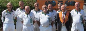 There was a ‘no-scoring’ final end on one of the other rinks, where Pat Reynolds’ edged home 19-18 against Peter Brown, who had ditched the jack when two shots down, which meant that Jeff Newson, holding shot on the remaining rink, didn’t have to deliver his last bowl, and so accepted a 13-18 defeat at the hands of Mick Duell.