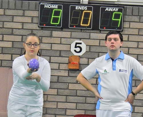 Recently capped England Under 25 international Stephen Harris (21) representing the Blackstones club, was matched against Stamford Town’s Helen Holroyd (23) and though a young player with great potential she was not expected to trouble a bowler who has held this county title both indoors and outdoors for several years.