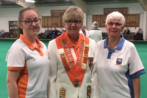 Northants scored a narrow first round women’s triples win over Norfolk. From the left are Chris Ford, June Brennan and Denise Mackie.
