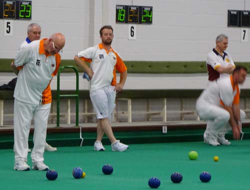 Elsewhere, Roger Martin’s rink was finding it difficult coming to terms with the conditions so as Federation rules allow the skip switched with lead Adam Warrington after 13 ends and it immediately paid dividends cutting the scoreline to 17-19 by the 17th end. But a five count against them on the 20th end put them on the back foot. However, they held gamely to keep the overall deficit manageable.