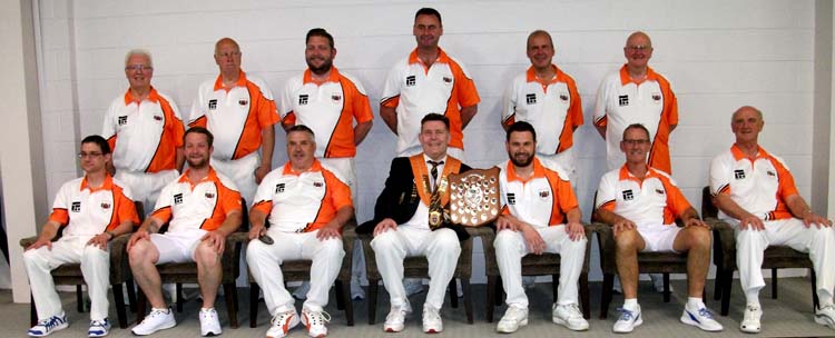 Derbyshire winners, from the left (front row) Adam Warrington, Tristan Morton, Mick Humphreys, Dick Noble (president), James Harford, Trevor Collins, Martyn Dolby (back row) Bob Warters, Roger Martin, Simon Law, Paul Dalliday, Nick Wilkie, Jeff Newson.