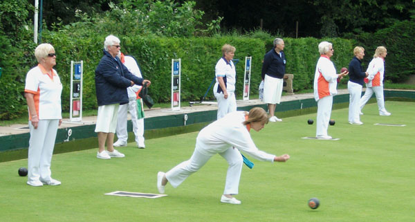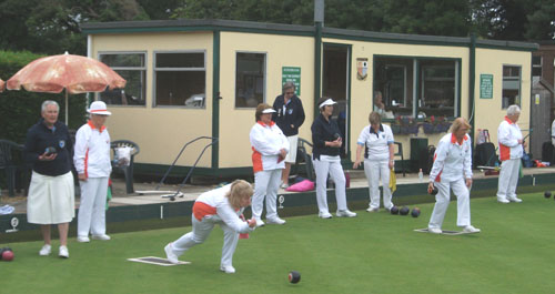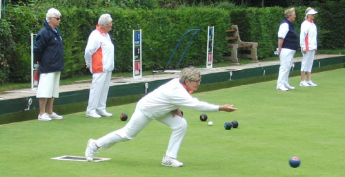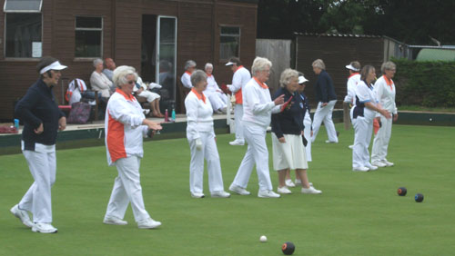 The Donald Steward team v Suffolk at Borough of Eye BC, shows only one change, with Norma Squires replacing Wendy Harrold in a rink which includes fellow City of Peterborough bowlers Fiona Richardson and Myra Landsburgh.