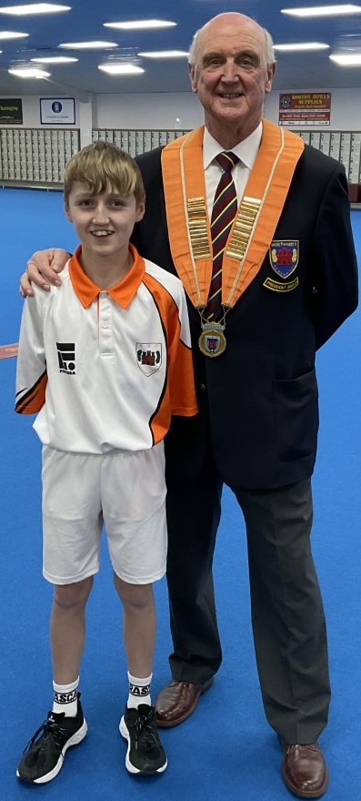 Ollie Jeapes, pictured with county president Martyn Dolby, lost in the final of the under 25 open singles.