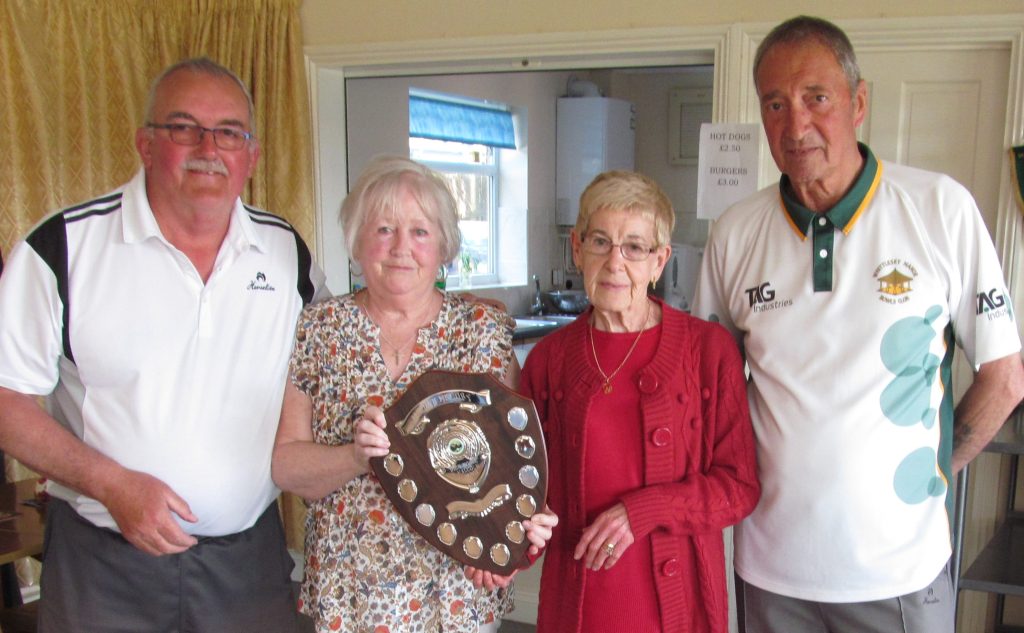 The respective county presidents, Martyn Dolby (NBF) and Martin Francis (Hunts), were in attendance and Sheron Noble and Norma Squires, widows of the former Northants stalwarts who sadly passed away last year, were on hand to present the shield to the Adams and Newton team captains Roger Stevens and Dave Corney respectively.
