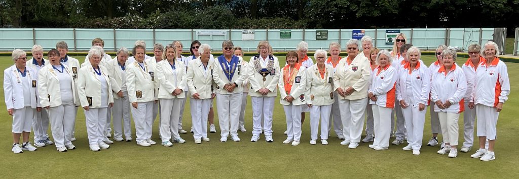 English Women’s Bowling Federation president Elaine Haddon-Holmes (centre) pictured with the Northants and Norfolk Donald Steward teams before their match at City of Peterborough. Norfolk won the match 107-90 (14-4), while the Silver Jubilee team ended their season with a 16-2 points defeat at Yaxley. Both the Northants teams remain without a win this season. The Steward team’s final match is at home to North Essex on July 19 which will decide who finishes bottom of the southern section. The Vase team have finished bottom of their division picking up just six points from their three fixtures.